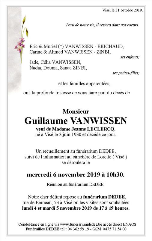 Décédé à Visé (4600) le jeudi 31 octobre 2019 à l'âge de 89 ans