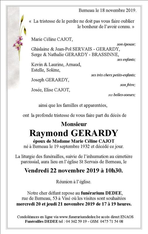 Décédé à Hermalle-sous-Argenteau (4681) le lundi 18 novembre 2019 à l'âge de 87 ans