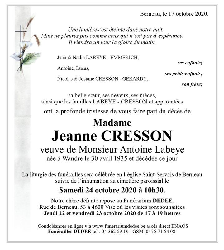 Décédée à Verviers (4800) le samedi 17 octobre 2020 à l'âge de 85 ans