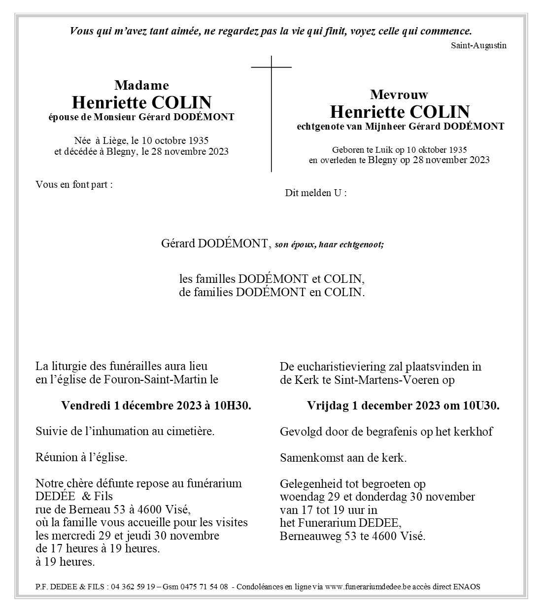 Décédée à Blegny (4670) le mardi 28 novembre 2023 à l'âge de 88 ans