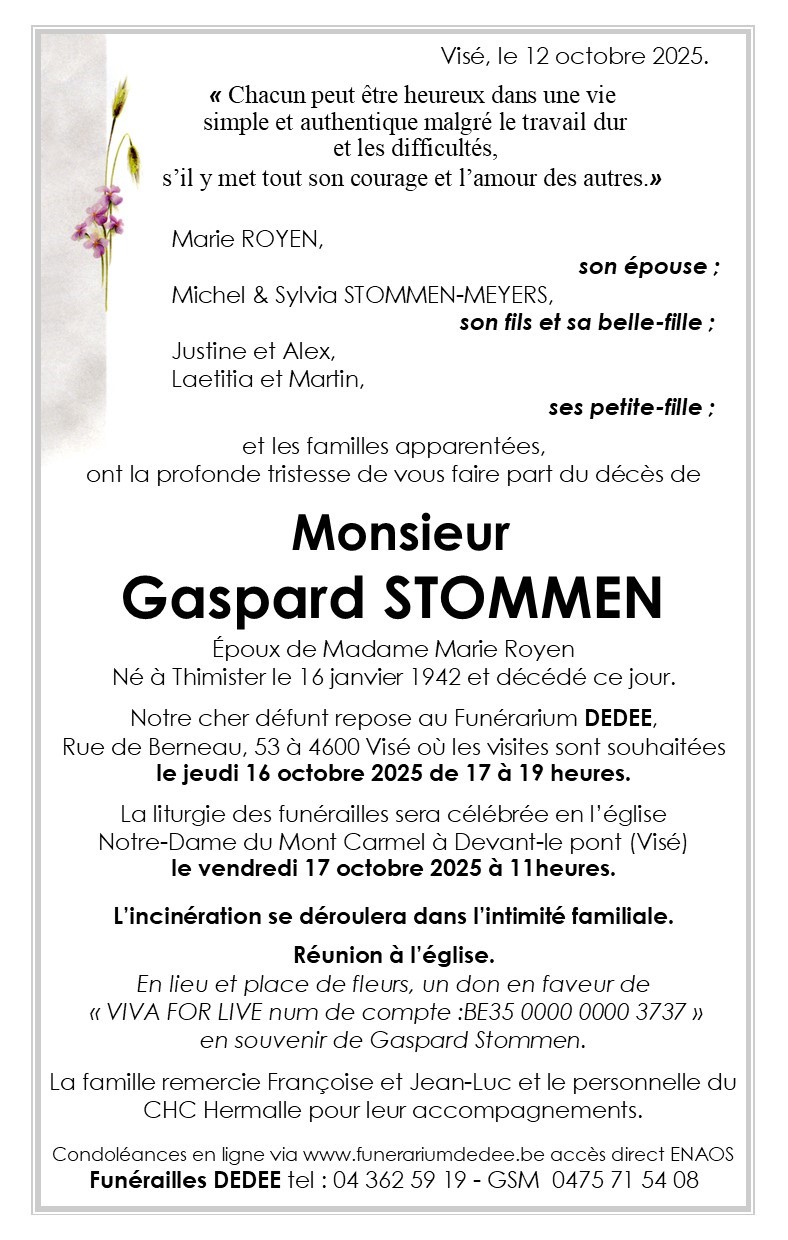 Décédé à Hermalle-sous-Argenteau (4681) le dimanche 12 octobre 2025 à l'âge de 83 ans