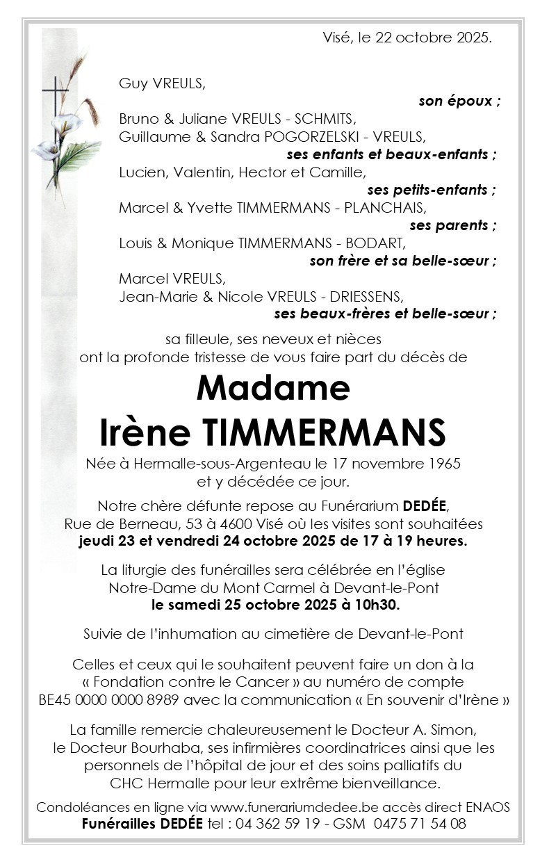 Madame Irène TIMMERMANS