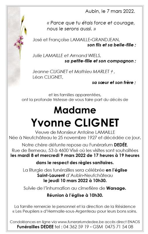 Décédée à Hermalle-sous-Argenteau (4681) le lundi 7 mars 2022 à l'âge de 94 ans