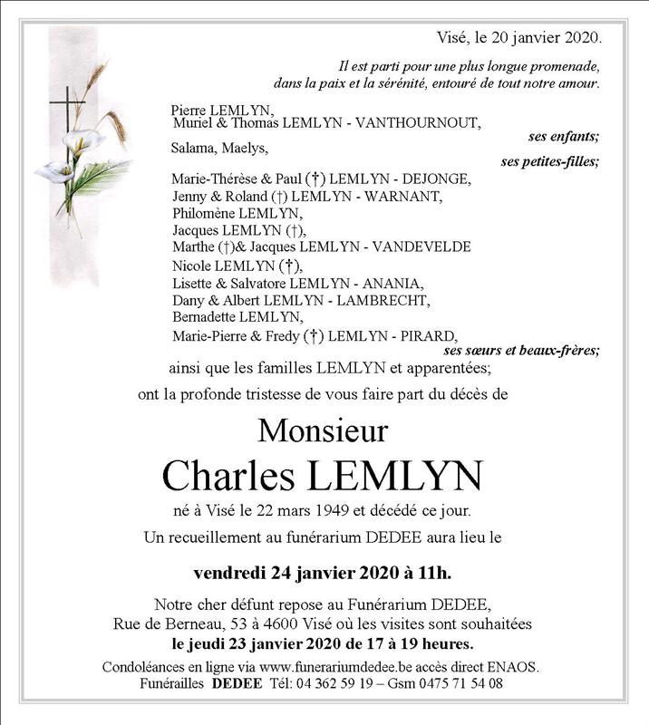Décédé à Haccourt (4684) le lundi 20 janvier 2020 à l'âge de 70 ans