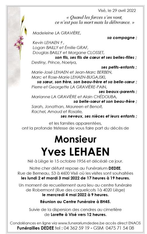 Décédé à Hermalle-sous-Argenteau (4681) le vendredi 29 avril 2022 à l'âge de 65 ans