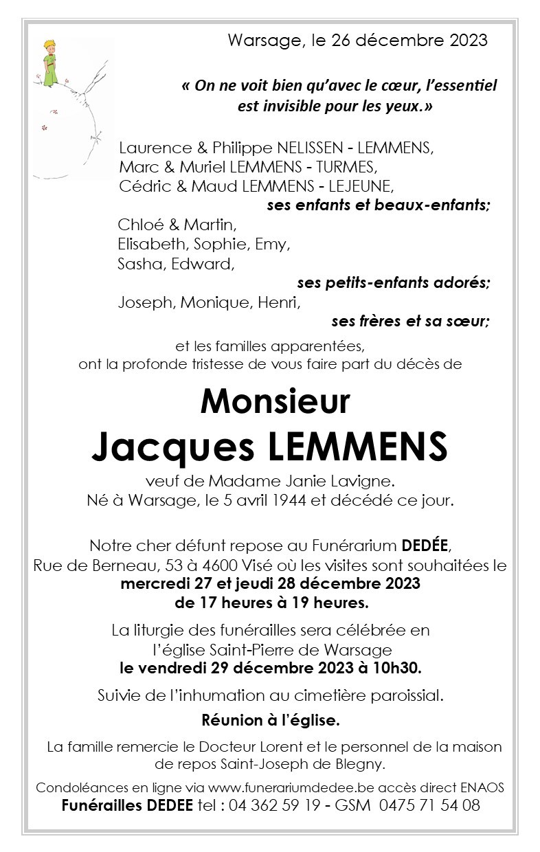 Décédé à Blegny (4670) le mardi 26 décembre 2023 à l'âge de 79 ans