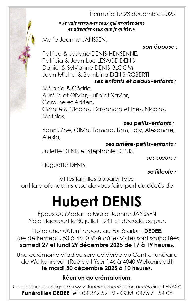 Né à Haccourt (4684) le mercredi 30 juillet 1941