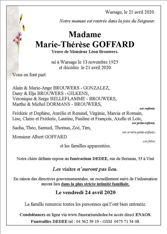 Madame Marie-Thérèse GOFFARD