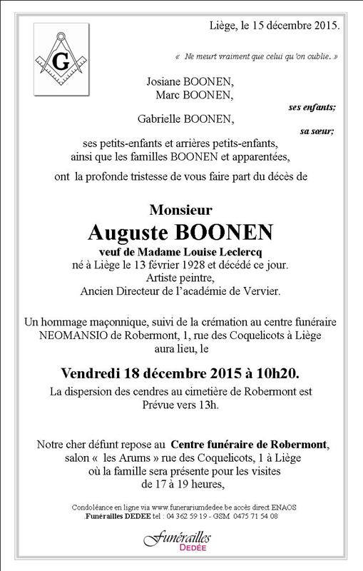 Décédé à Liège (4000) le mardi 15 décembre 2015 à l'âge de 87 ans
