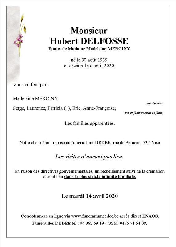 Décédé à Fléron (4620) le lundi 6 avril 2020 à l'âge de 80 ans
