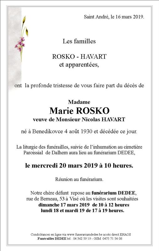 Décédée à Hermalle-sous-Argenteau (4681) le samedi 16 mars 2019 à l'âge de 88 ans
