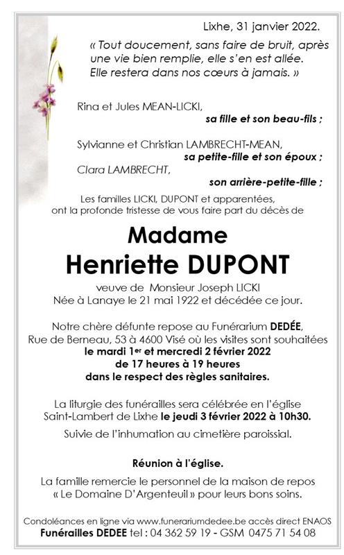 Madame Henriette DUPONT