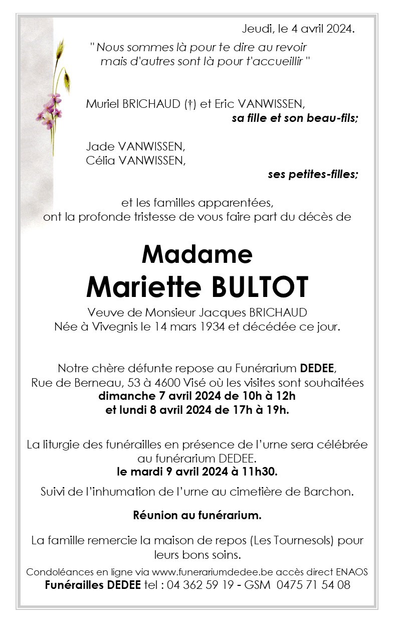 Madame Mariette BULTOT