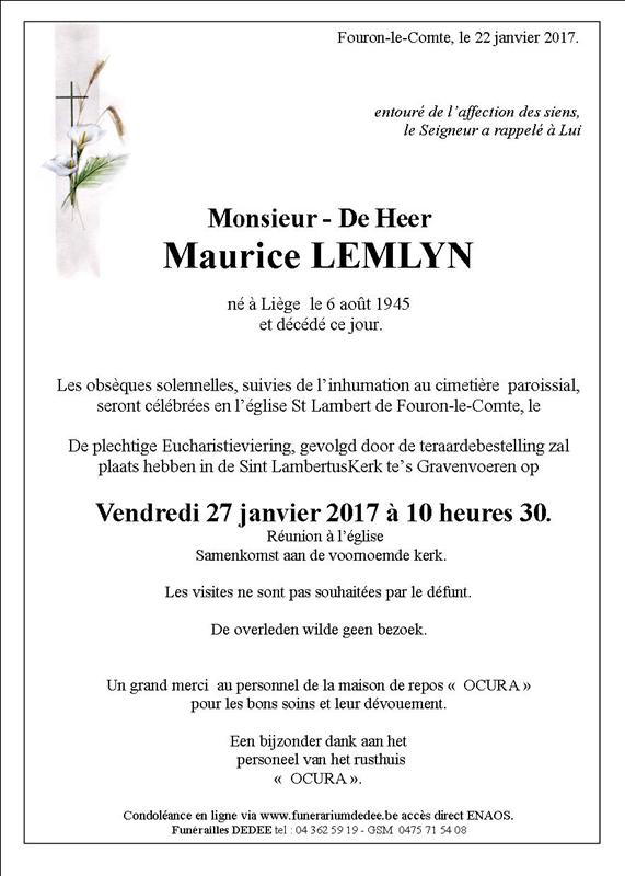 Décédé à Hermalle-sous-Argenteau (4681) le dimanche 22 janvier 2017 à l'âge de 71 ans