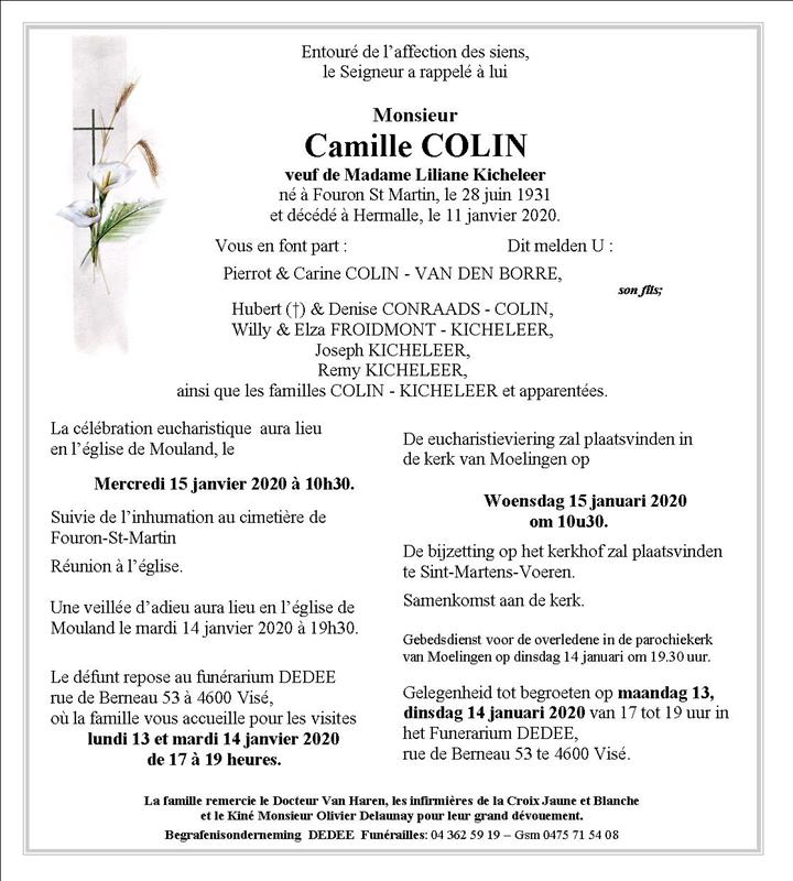 Décédé à Hermalle-sous-Argenteau (4681) le samedi 11 janvier 2020 à l'âge de 88 ans