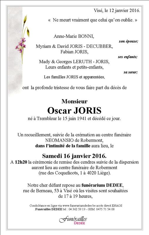 Décédé à Liège (4020) le mardi 12 janvier 2016 à l'âge de 74 ans