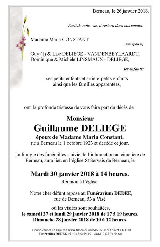 Décédé à Blegny (4670) le vendredi 26 janvier 2018 à l'âge de 94 ans