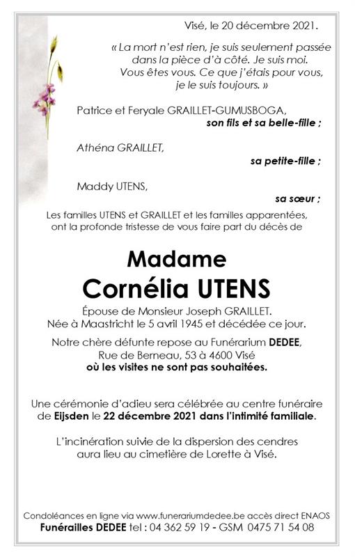 Décédée à Visé (4600) le lundi 20 décembre 2021 à l'âge de 76 ans