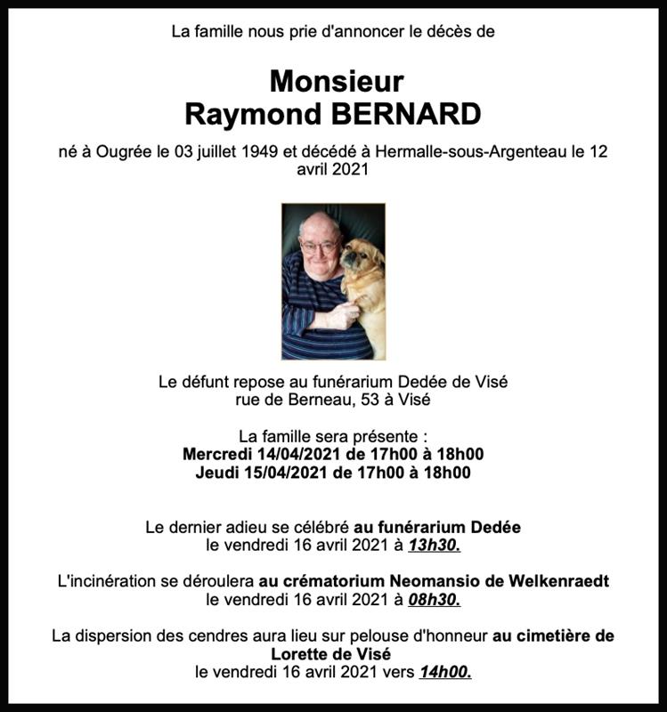 Décédé à Hermalle-sous-Argenteau (4681) le lundi 12 avril 2021 à l'âge de 71 ans